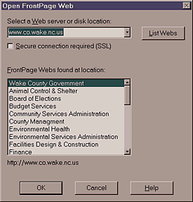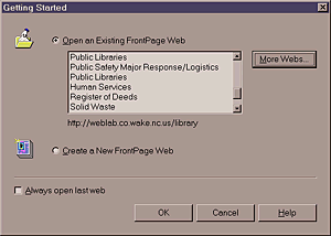 - Under "File" on the menu bar choose "Open Frontpage Web".